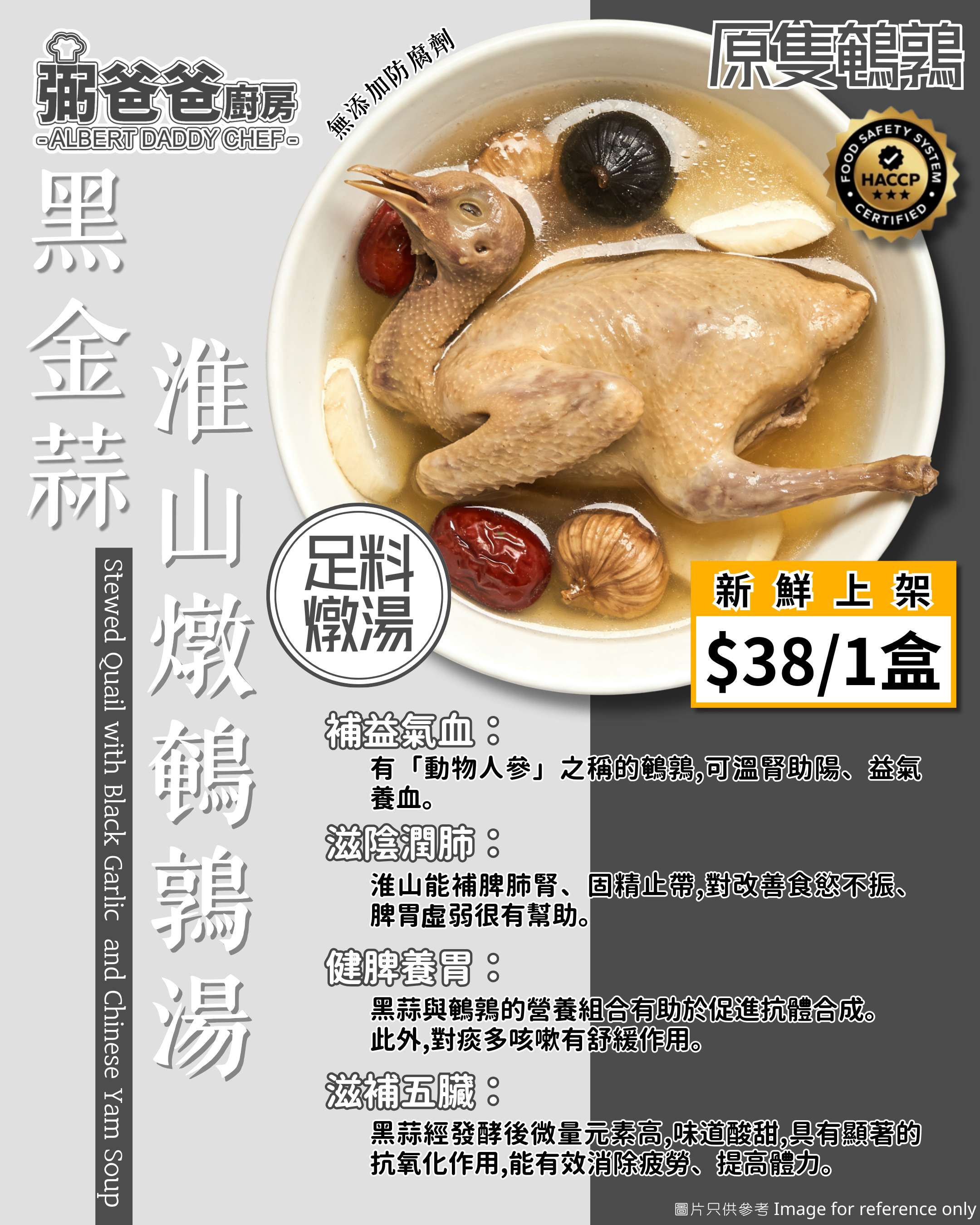 健脾補腎: 淮山與鵪鶉相結合,能加強補益脾胃與肝腎的功效,對小兒發育、改善經常疲倦有幫助。
